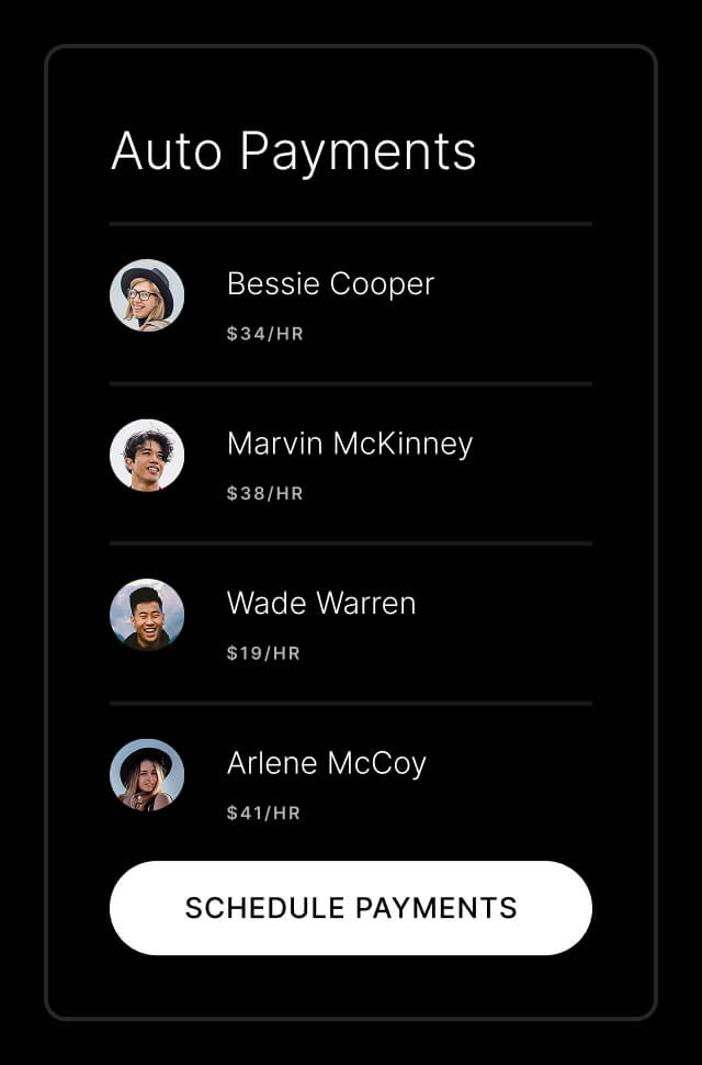 Whether weekly, bi-weekly, or monthly, set flexible pay schedules that fit your business needs.